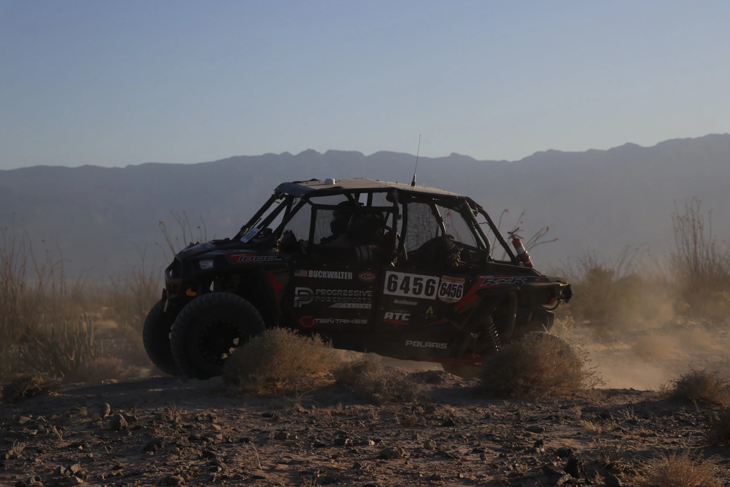 NORRA delayed the official start, and Dusty officially began the quest for victory at 11:35 from downtown Ensenada. The day started with Erich driving and Hans navigating.